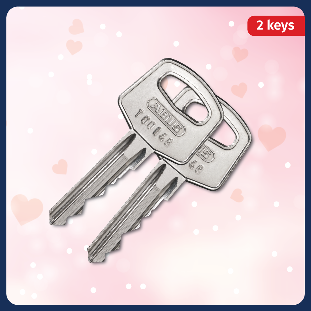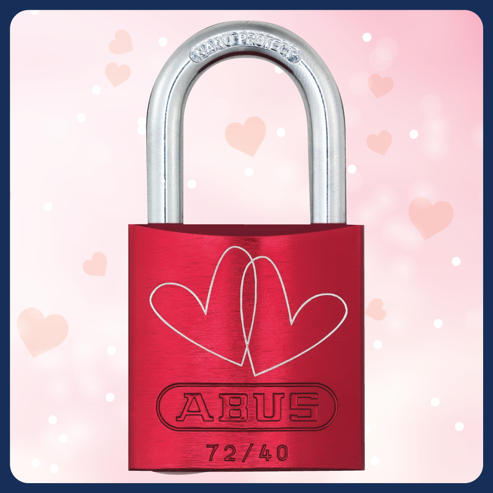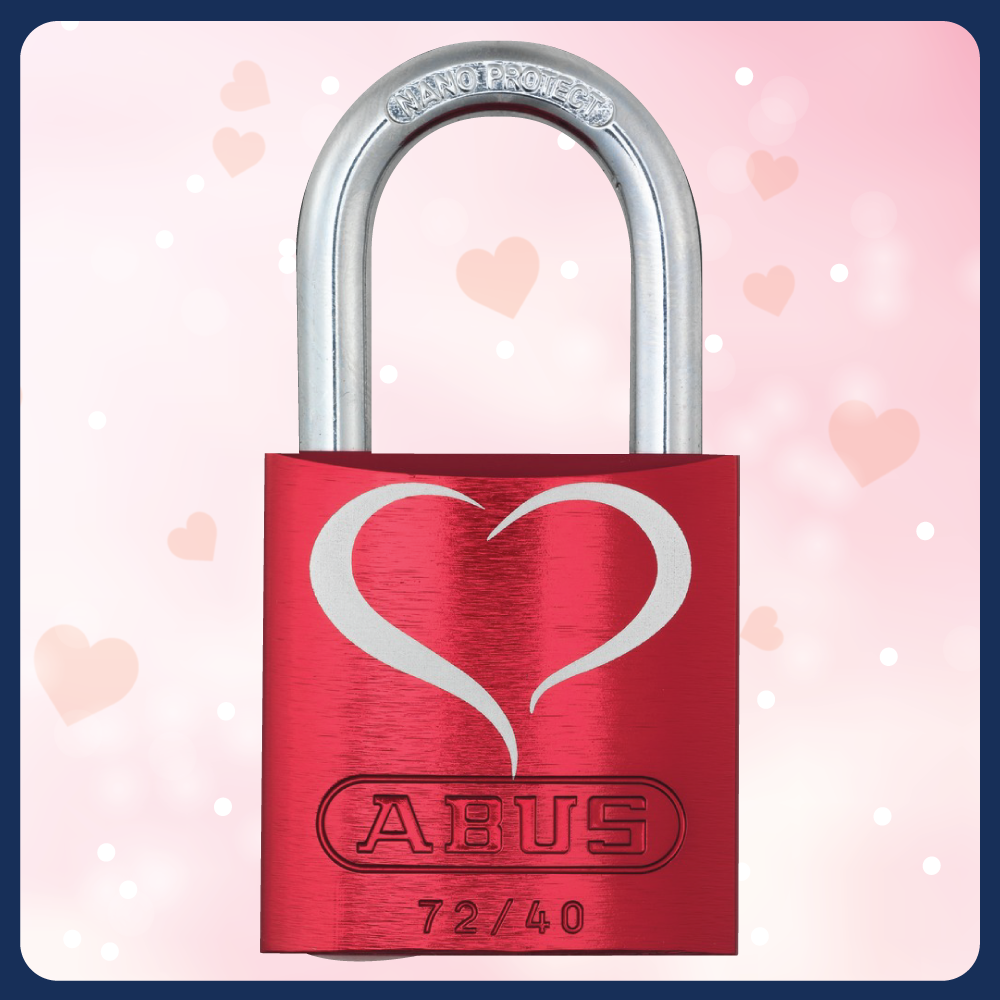 ABUS aluminum locks are also suitable for other applications – ideal for individual security and with a high recognition value thanks to intense colors. The Love Lock 72 padlock secures doors, gates, cupboards, lockers, tool boxes, cellars, sheds, switchgears, etc. The colored lock body made of aluminum is protected against corrosion and is complemented by a hardened shackle. With the lock number on the key, you can easily create additional keys.