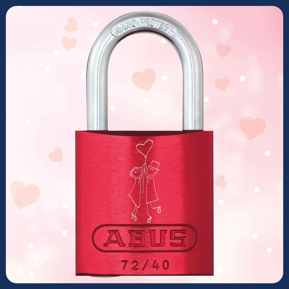 A love lock as a sign of eternal love: More and more couples are using padlocks for vows of love. Hanging on a bridge, the love lock symbolizes eternal bond. With the Love Lock 72, ABUS offers the right lock for this romantic custom. In radiant red – the color for love – and with romantic motifs, the vow of love on the bridge railing is perfect. Those in love can choose from six motifs; a personal engraving with name and / or wedding date is possible on the back.